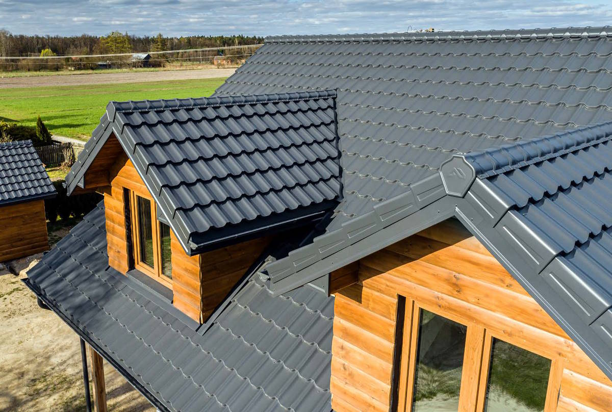 идеально компонуется с волнами модульной металлочерепицы Venecja, делая ее наиболее эстетичным стальным кровельным покрытием.