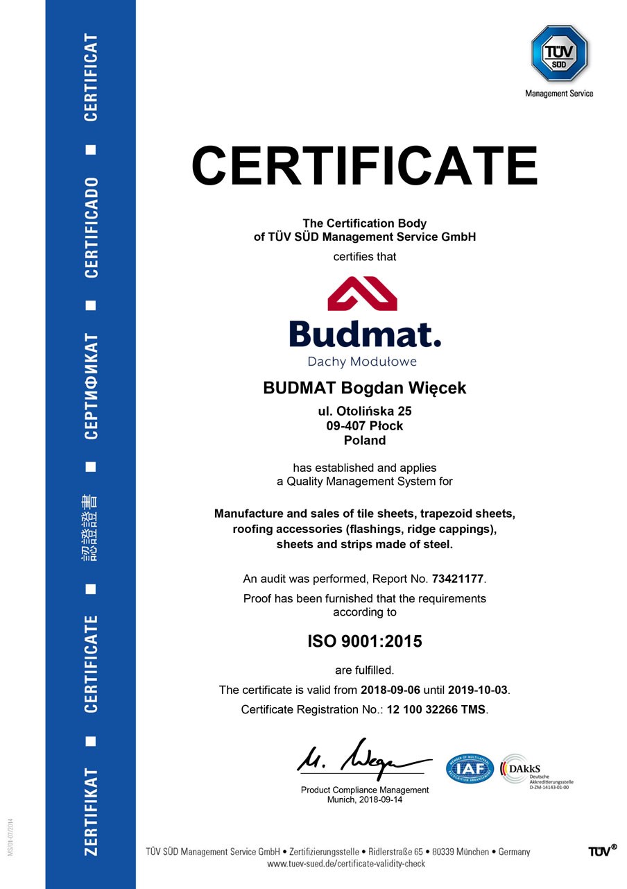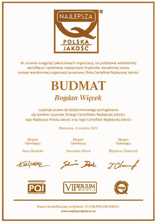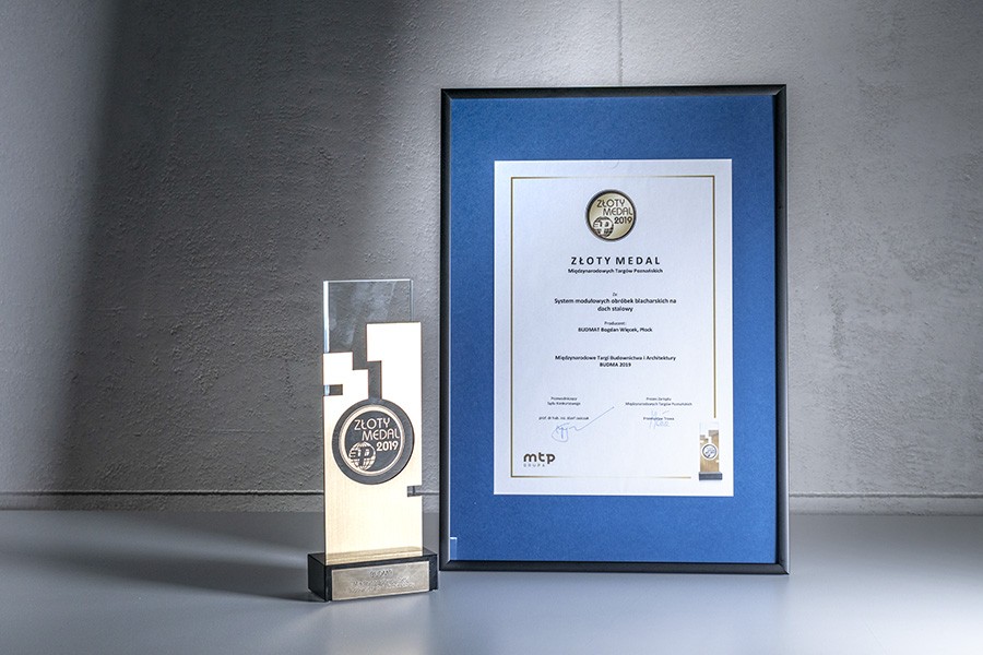 Под этим лозунгом, вместе с системой кровельных отделочных элементов, мы входим в рынок кровельных покрытий. Мы уверены, что крыша, с нашими отделочными элементами, каждому дому придаст неповторимый, очень эстетический внешний вид, которого раньше нельзя было ожидать от кровли. За наши инновационные технические решения, наша система была удостоена Золотой Медали на Международной выставке Budma 2019 в Познани.