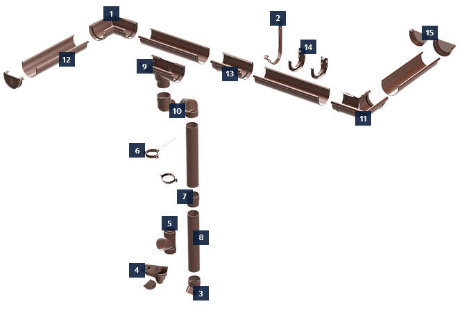 Proaqua – в отличии от остальных водосточных систем это, хомут имеет уплотнительное кольцо для защиты от выпадения болта из хомута трубы, метки - индикаторы (стрелки), указывающие направление установки, возможность монтажа желоба на кронштейны как со стороны карнизного свеса, так и со стороны стены, фиксатор в соединении желоба с кронштейном, что создает замок, предотвращающий выпадение желоба после монтажа водосточной системы. Вот почему сборка так проста.