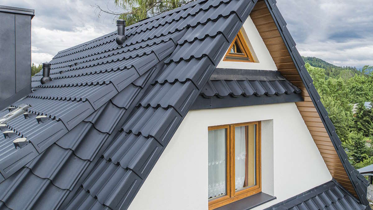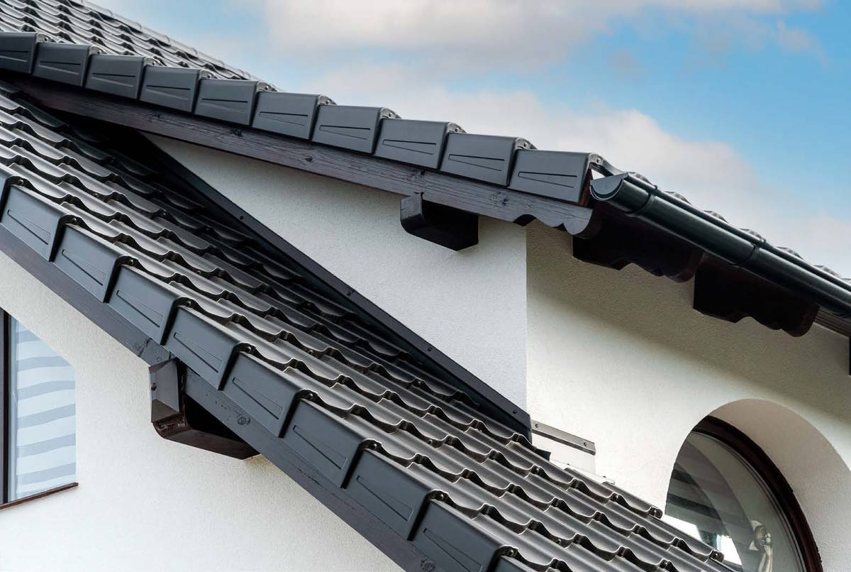 идеально компонуется с волнами модульной металлочерепицы Venecja, делая ее наиболее эстетичным стальным кровельным покрытием.