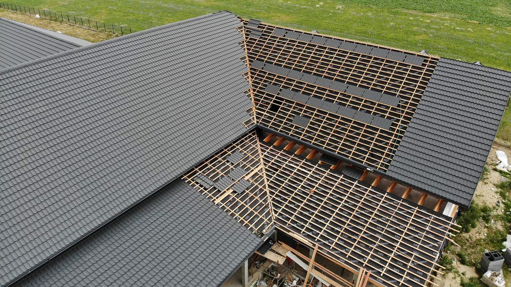 Такое решение обеспечивает более эффективный сток воды с поверхности крыши, предотвращая ее застой. Поперечные соединения модулей на крыше – невидимы и модули идеально скреплены друг с другом. Эта инновационная технология монтажа позволяет собрать модули между собой в один большой идеально ровный скат, а затем его откалибровать. Корректируй весь скат после сборки модулей между собой.