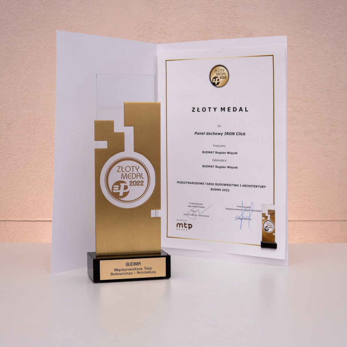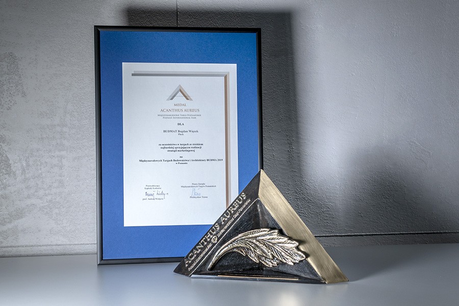 Под этим лозунгом, вместе с системой кровельных отделочных элементов, мы входим в рынок кровельных покрытий. Мы уверены, что крыша, с нашими отделочными элементами, каждому дому придаст неповторимый, очень эстетический внешний вид, которого раньше нельзя было ожидать от кровли. За наши инновационные технические решения, наша система была удостоена Золотой Медали на Международной выставке Budma 2019 в Познани.
